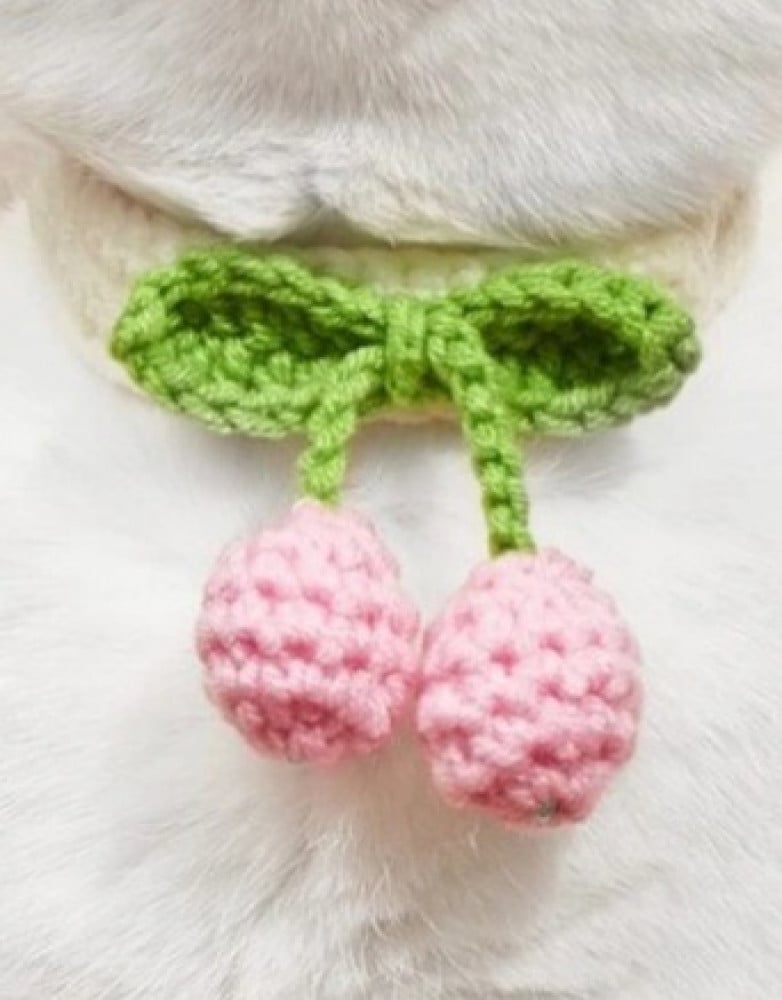 طوق تريكو للقطط بكرات وردية