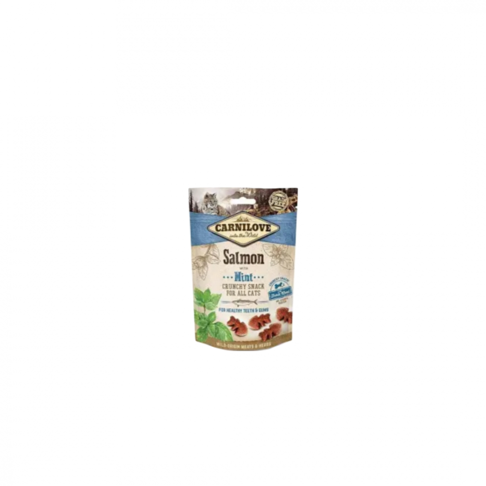 كارنيلوف مكافآت سالمون مع النعناع للقطط البالغة 50 جم، مكمل غذائي ومكافئة لقطك، يتكون من سمك السالمون والنعناع المفيد.